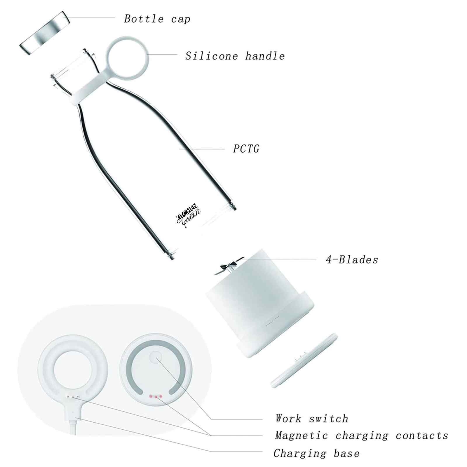 - Cordless, rechargeable power so you can blend on-the-go